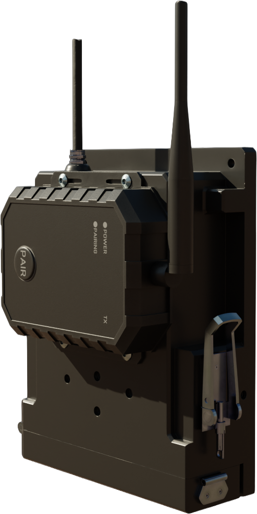 • Cuenta con un Transmisor TX altamente resistente, capacidad de comunicación de 150 metros vista, todo esto alimentado con una Batería de Litio recargable, diseñada para alto rendimiento, con una duración de hasta 28 horas continuas, en base a configuración de detección de NO uso de monitor por unos minutos.