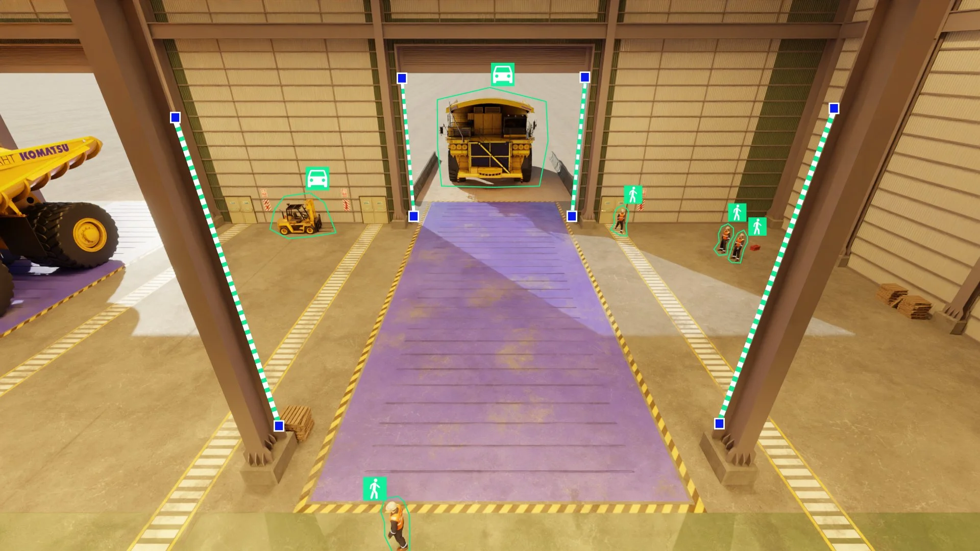 Mediante programación y el uso de algoritmos avanzados, detección de objetos, reconocimiento de patrones y análisis en tiempo real, el sistema permite identificar y supervisar de forma continua la correcta segregación de zonas críticas, como áreas de carga y descarga, tránsito de maquinaria pesada, circulación de personal y zonas de almacenamiento de materiales peligrosos.